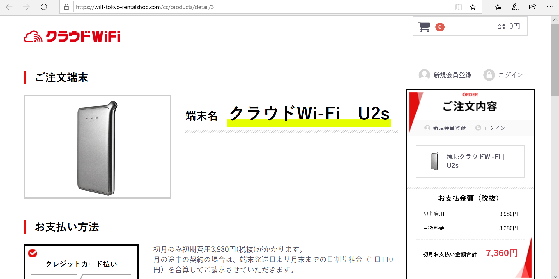 クラウドWiFi東京 申し込み1
